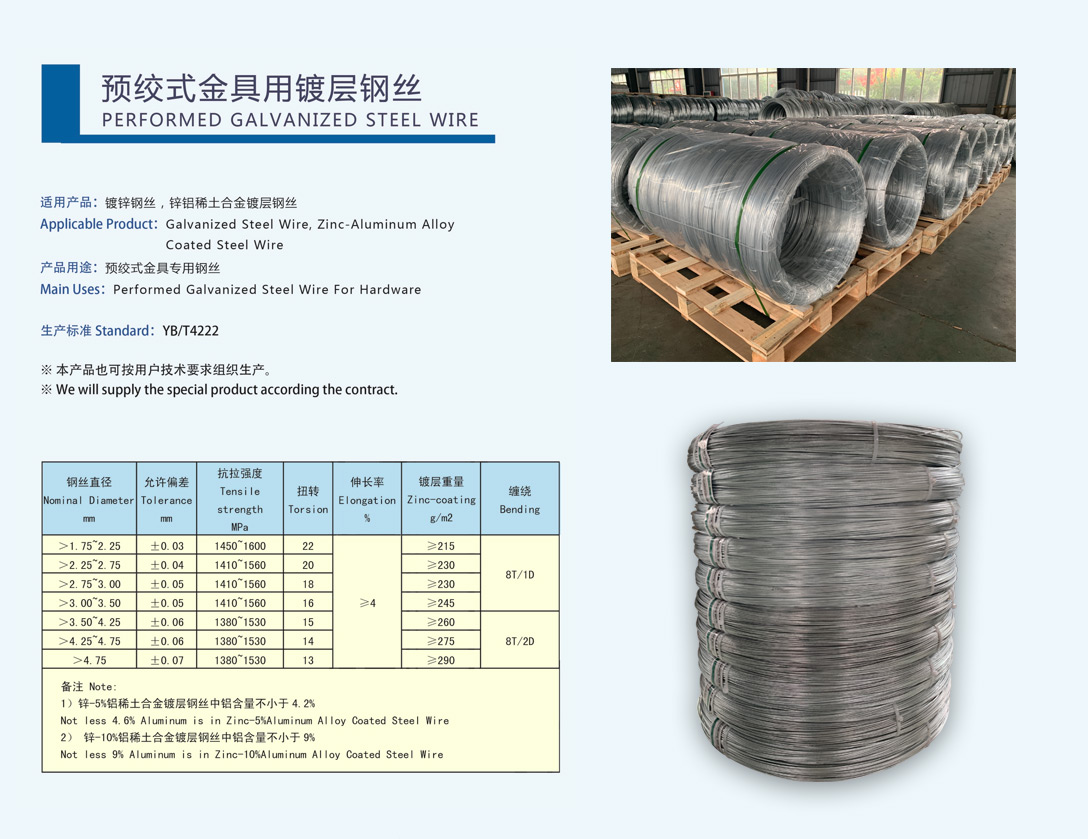 預絞式金具用鍍層鋼絲